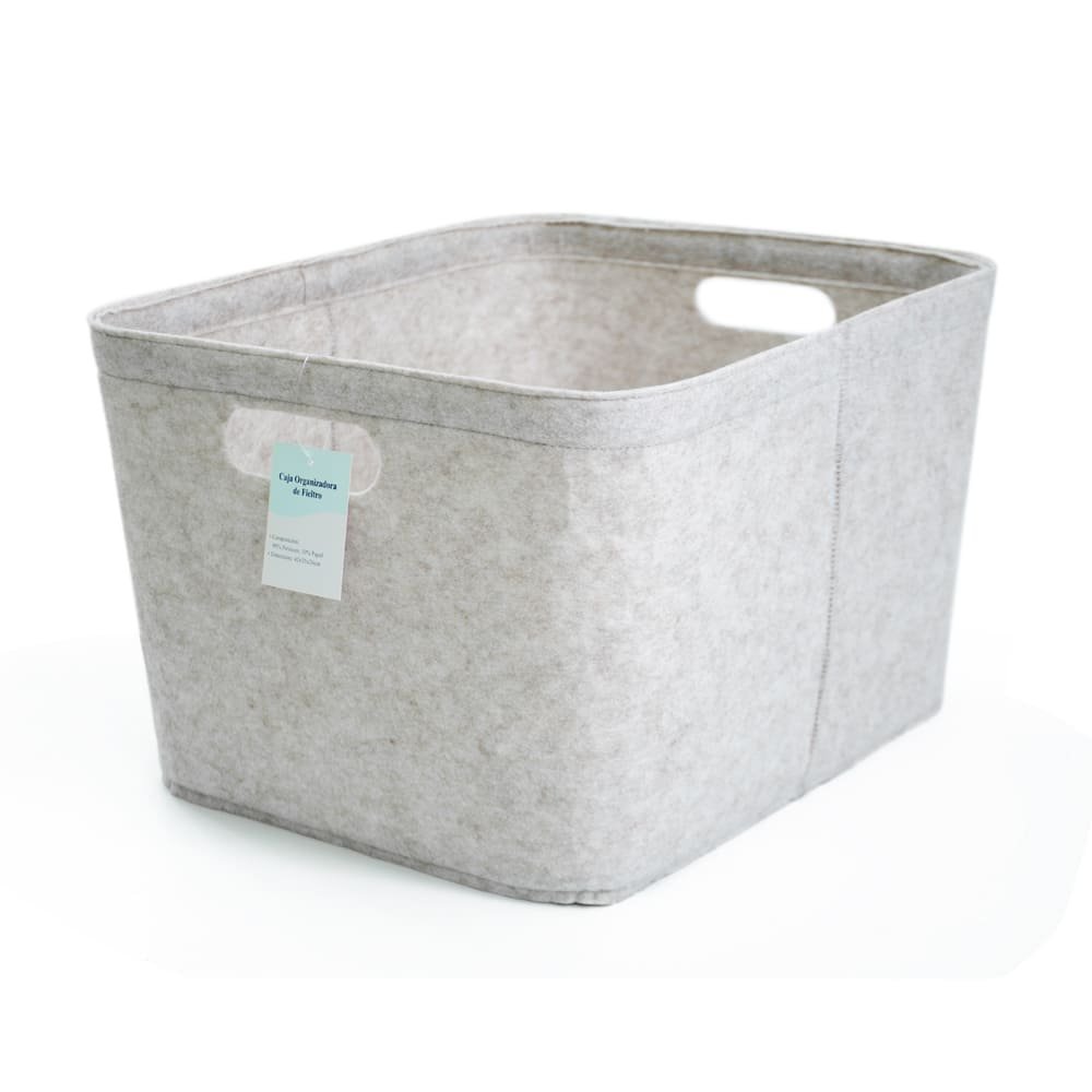 Caja organizadora de fieltro con agarraderas de 42 x 35 cm color beige