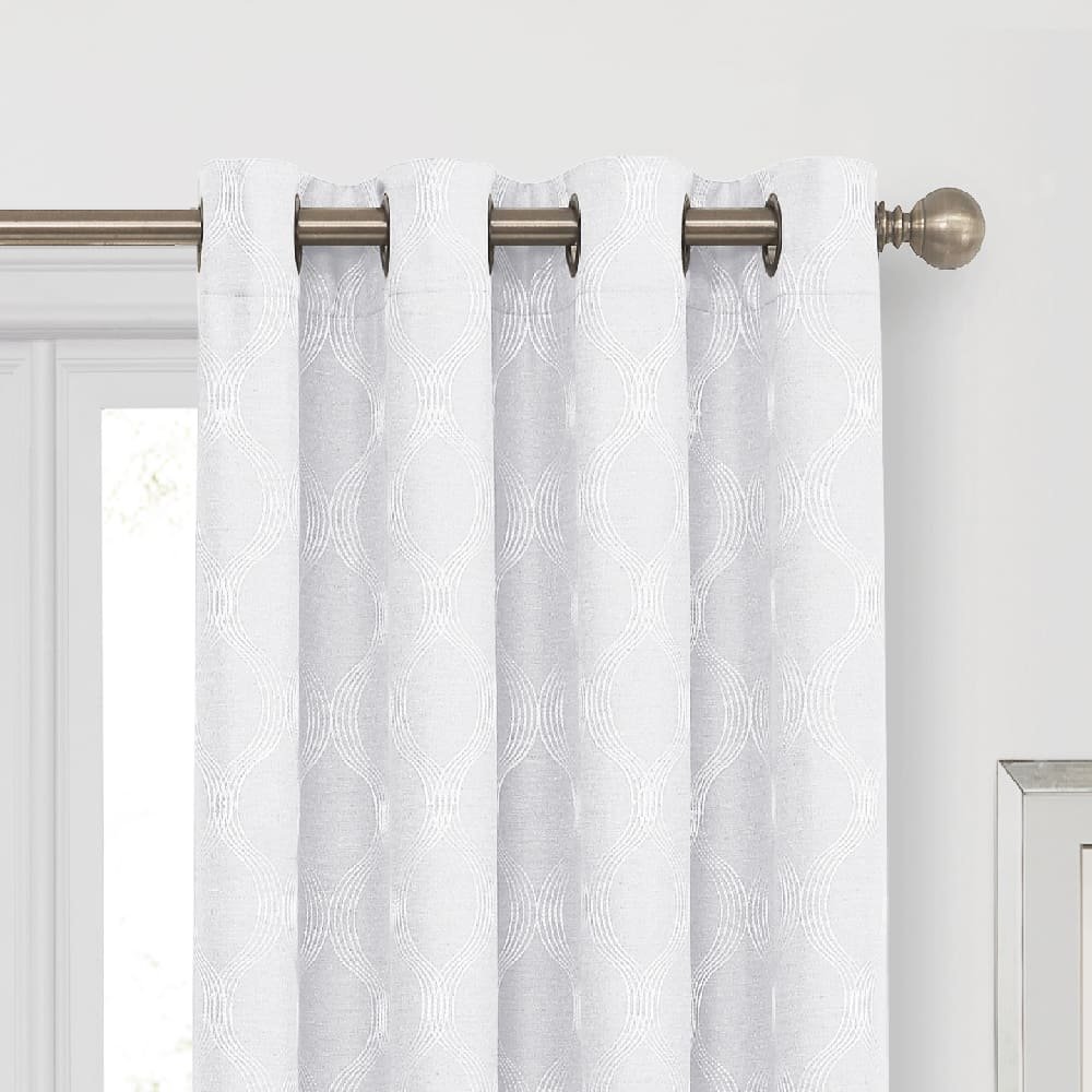 Cortina blackout de poliéster Regal Home Collections®, crea la iluminación ideal en tu espacio con ella. La luz influye directamente en el ambiente del hogar, demasiada luz en la habitación incorrecta impedirá una buena noche de sueño e incluso dejará al descubierto el interior de la casa. Con la intención de cuidar tu privacidad y darte la posibilidad de crear la iluminación perfecta, te presentamos la cortina blackout de la línea Prescott. Se confeccionó para evitar que los rayos del sol entren a tu espacio, creando una atmósfera más oscura y personal. Además, dándole la misma importancia a la decoración de interiores, está decorada con un patrón ondulado color blanco para darle un detalle elegante a cualquier habitación. Para hacerte más fácil la tarea de quitarlas y ponerlas, añadimos una serie de ojales en la parte superior, estos hacen más fácil manejarla sin importar el cortinero donde elijas ponerla.Cortina blackoutLínea PrescottHaz espacios más oscuros y privadosHecha para bloquear la luz del exteriorPatrón ondulado color blancoDiseño modernoOjales en la parte superiorBordadasPoliésterLavar a máquinaPeso: 1.77 kgMedidas: 1.27 m de ancho y 2.41 m de altoLa medida del ancho hace referencia al ancho de todo el cortinero