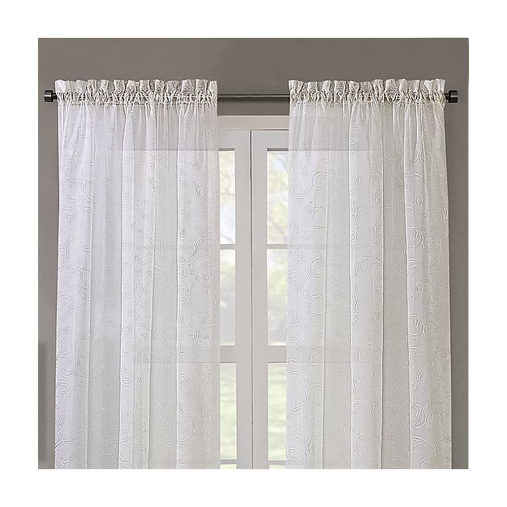 Cortina traslúcida de poliéster Regal Home™, el detalle que estabas buscando para tu hogar. Si quieres que entre más luz a tu espacio, es necesario que pongas las cortinas adecuadas. Esta cortina traslúcida dejará que los rayos de sol entren a tu habitación sin que el interior sea completamente visible desde el exterior. Esto no solo significa una mejor iluminación, también una atmósfera más cálida. Cuenta con un diseño bordado para darle un aspecto atractivo, además, es fácil de instalar gracias al dobladillo superior que permite el paso del tubo del cortinero. Consigue la iluminación perfecta y deja que esta cortina te acompañe a casa.TraslúcidaDeja pasar la luzDiseño bordadoColor marfil1 piezaAl dejar pasar los rayos de sol, también hará un ambiente más cálidoIdeal para cualquier habitaciónDobladillo para cortineroPoliésterLavar a máquinaMedidas: 1.37 m de ancho y 2.41 m de altoLa medida del ancho hace referencia al ancho de todo el cortinero