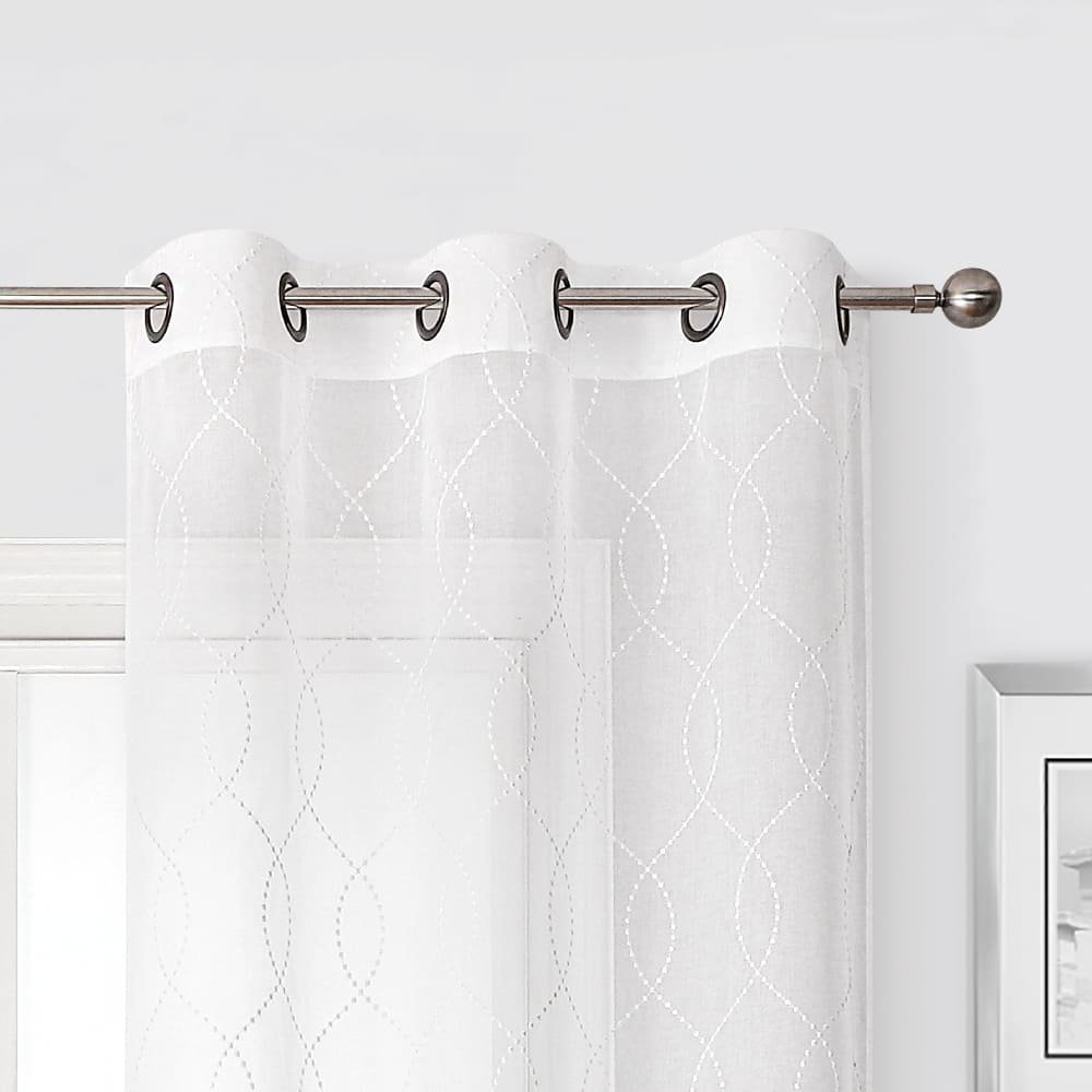 Cortinas traslúcidas de poliéster Regal Home Collections®, un toque elegante para iluminar tu espacio. Las cortinas adecuadas en el lugar correcto tienen la capacidad de transformar una habitación oscura en la más radiante de la casa. Si te gustan los espacios bien iluminados lleva este juego de cortinas traslúcidas de la línea Starbust. Están hechas de poliéster y su grosor es delgado, perfecto para permitir el paso de la luz del sol. Además, las decora un patrón de líneas onduladas verticales color blanco, un toque atractivo para la decoración de tu hogar. Como detalle adicional, se añadieron ojales a la parte superior, estos las hacen fáciles de deslizar sobre el cortinero.Set de cortinas traslúcidasLínea StarbustPermite el paso de la luz exteriorOjales en la parte superiorAprovecha al máximo la luz del día para hacer una iluminación naturalPatrón de líneas onduladas blancas sobre un fondo blanco2 piezasPoliésterLavar a máquinaPeso: 1.41 kgMedidas: 1.93 m de ancho y 2.13 m de altoLa medida del ancho hace referencia al ancho de todo el cortinero
