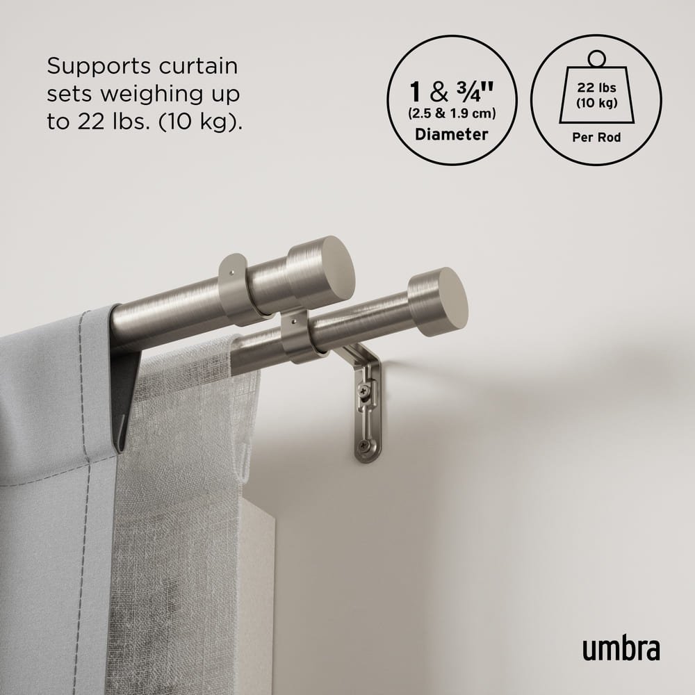 Cortinero doble extensible Umbra™, cuelga dos juegos de cortinas en un solo lugar. Por lo general, se suele colgar un solo par de cortinas, sin embargo, a veces es mejor combinar estos textiles para hacer una mejor decoración. Por ejemplo, puedes combinar una cortina traslúcida con una blackout para permitir el paso de luz a tus habitaciones durante el día y tener una iluminación absolutamente oscura durante la noche. Con ayuda de este cortinero doble podrás combinar hasta dos tipos de cortinas diferentes. Tiene dos tubos paralelos donde puedes colgarlas, uno es delgado y está dedicado a telas más ligeras, mientras que el otro es un poco más grueso para textiles más grandes. Ambos tienen el mismo diseño en color plateado con terminales redondas, de este modo, harán juego entre sí. Además, incluye todo lo necesario para instalarlos. Lo mejor de todo es que se hicieron para acomodar cualquier tipo de cortina, no importa si utilizan anillas, listones o bolsillo, podrás colgarlas fácilmente.Juego de cortineros extensibles Cappa2 piezasCuelga hasta 2 pares de cortinas en un solo lugarCombina telas traslúcidas con blackoutUn cortinero es grueso y el otro delgadoDiseñados para colgar todo tipo de cortinasIncluye todo lo que necesitas para instalar los cortinerosCada cortinero soporta hasta 10 kgTerminales redondas con diseño de tuboColor plateadoLimpiar con un paño húmedoMedidas: de 91 cm de ancho hasta 1.68 m de anchoDiámetro de las terminales: 2.5 cm (cortinero grueso) y 1.9 cm (cortinero delgado)