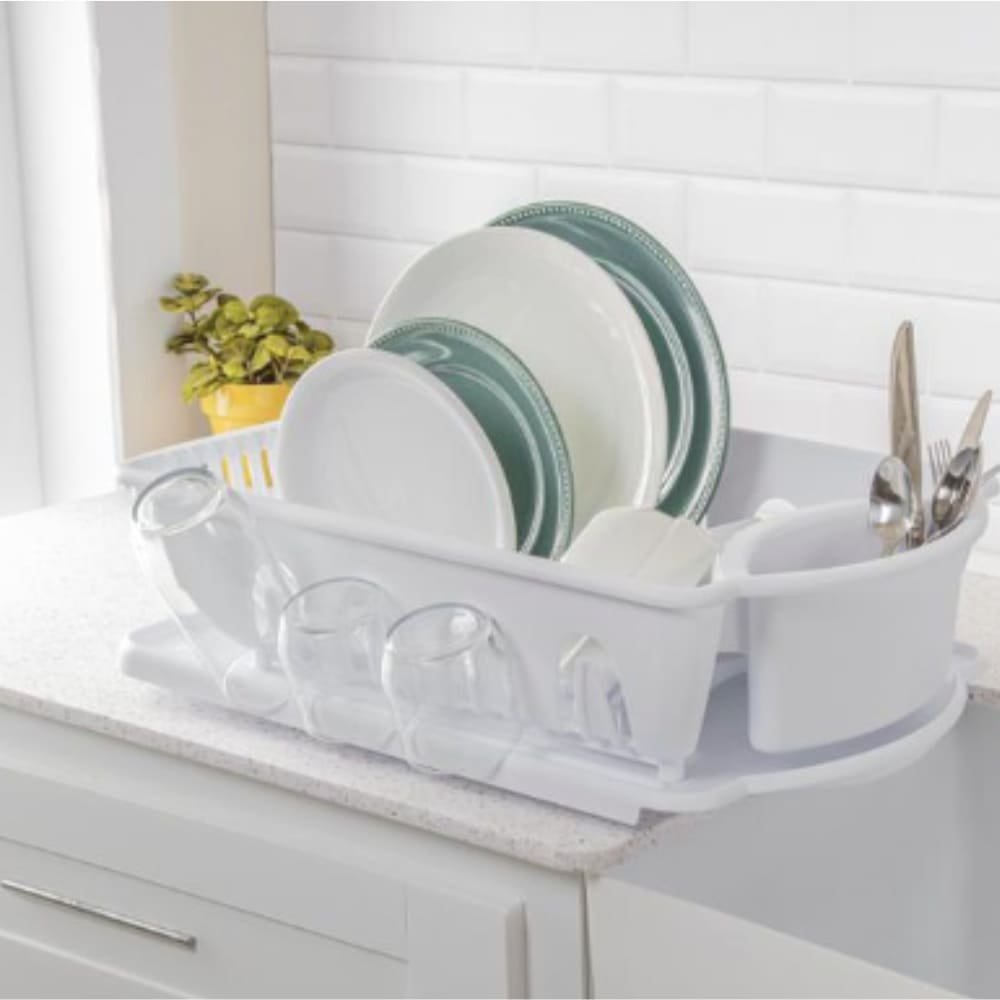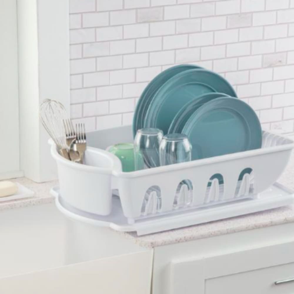 Escurridor grande con base Sterilite® un accesorio imprescindible para garantizar que tus trastes se sequen correctamente antes de guardarlos en la alacena. Este escurridor de dos piezas es ideal para secar todo tipo de utensilios y vajillas de manera segura, ya que tiene la capacidad suficiente para colocar hasta 14 platos, 7 bowls y 8 tazas sin tener qué amontonarlos. En la parte inferior tiene una base que recoge el agua sobrante para evitar que se escurra por tu mostrador. Además, esta última está diseñada con un borde inclinado que debe colocarse directamente sobre el fregadero para que el líquido caiga directamente. Si necesitas limpiarlo, solo es cuestión de separar la base del resto y volver a colocarla una vez que hayas terminado.Color blanco2 piezasCon base fácil de quitar y ponerIdeal para secar tus trastes antes de guardarlosBase con borde que permite drenar el agua directo al fregaderoCaben hasta 14 platos planos, 7 bowls y 8 tazasÁrea para cubiertosFácil de limpiarPeso: 7.7 kgMedidas: 37.4 cm de ancho, 53.6 cm de largo y 15.5 cm de alto