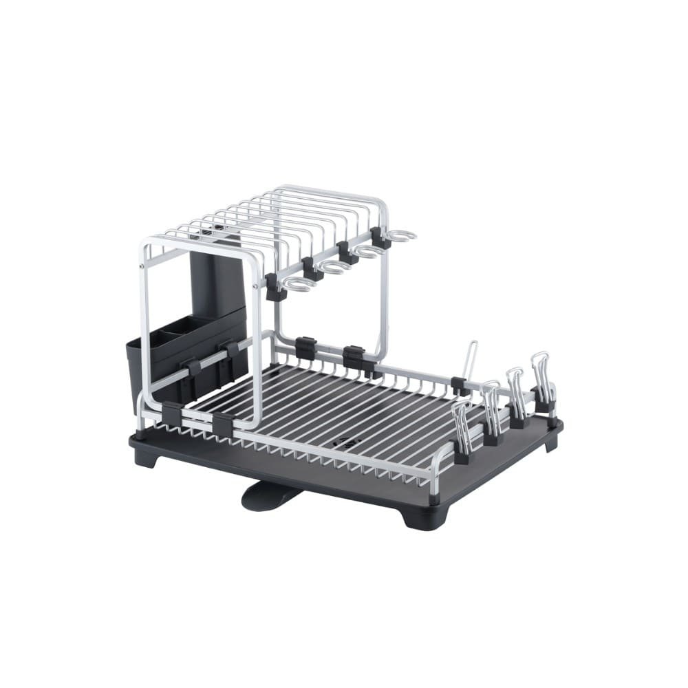 Escurridor para trastes de aluminio Namaro Design®, la pieza ideal para tu cocina. Este escurridor tiene todo el espacio que necesitas para lavar todos los trastes que utilices cuando cocines y después de comer. Cuenta con una sección superior para los platos extendidos, mientras que, en la parte inferior, puedes colocar platos hondos, vasos y más. Además, tiene secciones especiales para tablas de cortar, copas, vasos, cubiertos y cuchillos. No te preocupes por mojar tu gabinete, su charola de desagüe dirigirá los líquidos directo al fregadero gracias a su boquilla. Dale un giro a cómo lavas los platos y optimiza tu espacio con este escurridor para trastes.Escurridor para trastes con 2 nivelesLavar con esponja y secar, no usar fibras abrasivasAluminioPeso: 1.75 kgMedidas: 57.5 cm de ancho, 37.2 cm de largo y 31.9 cm de alto