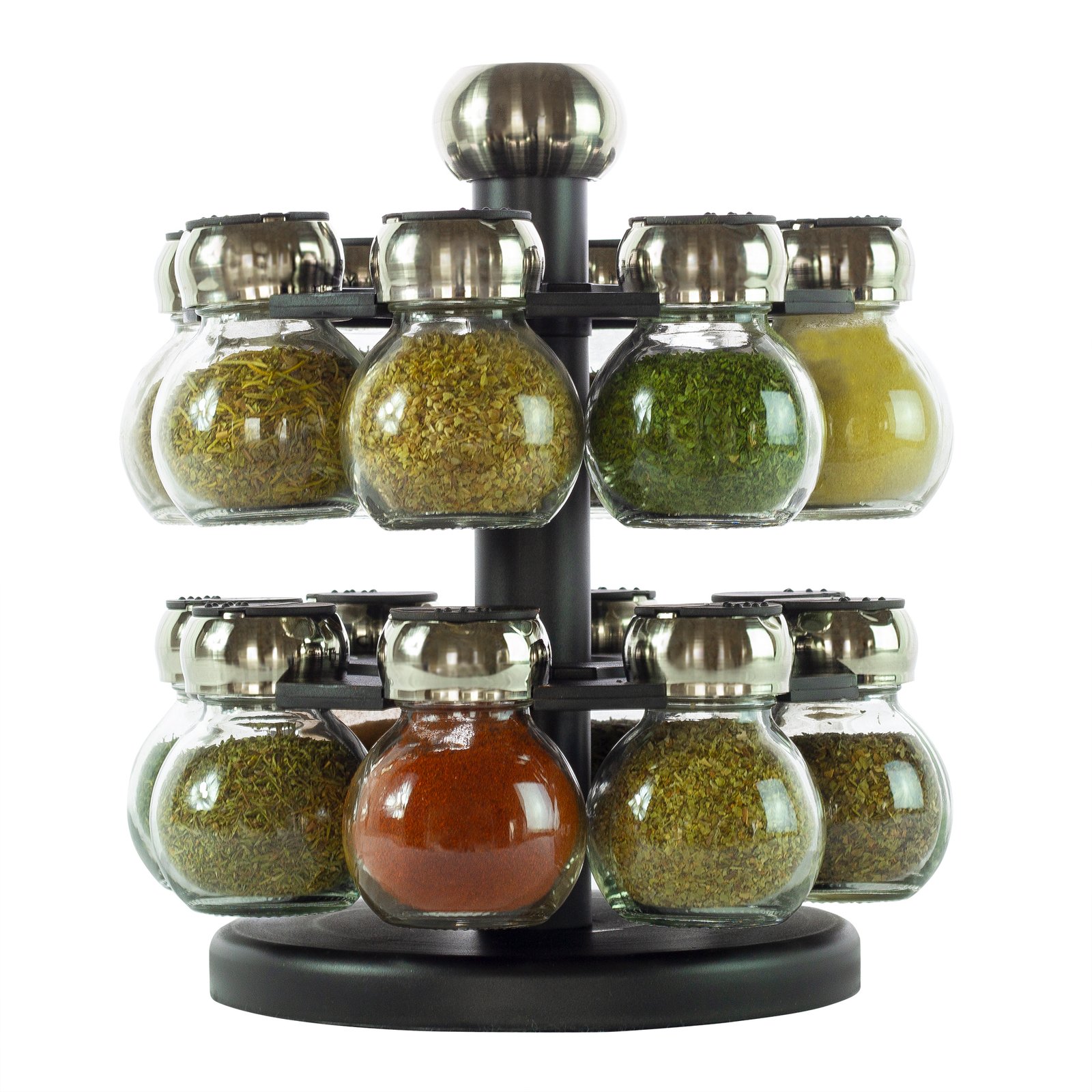 Especiero de vidrio Olde Thompson®, de 16 frascos tipo órbita
