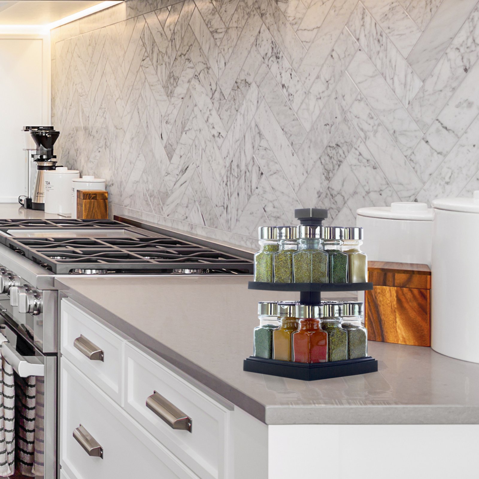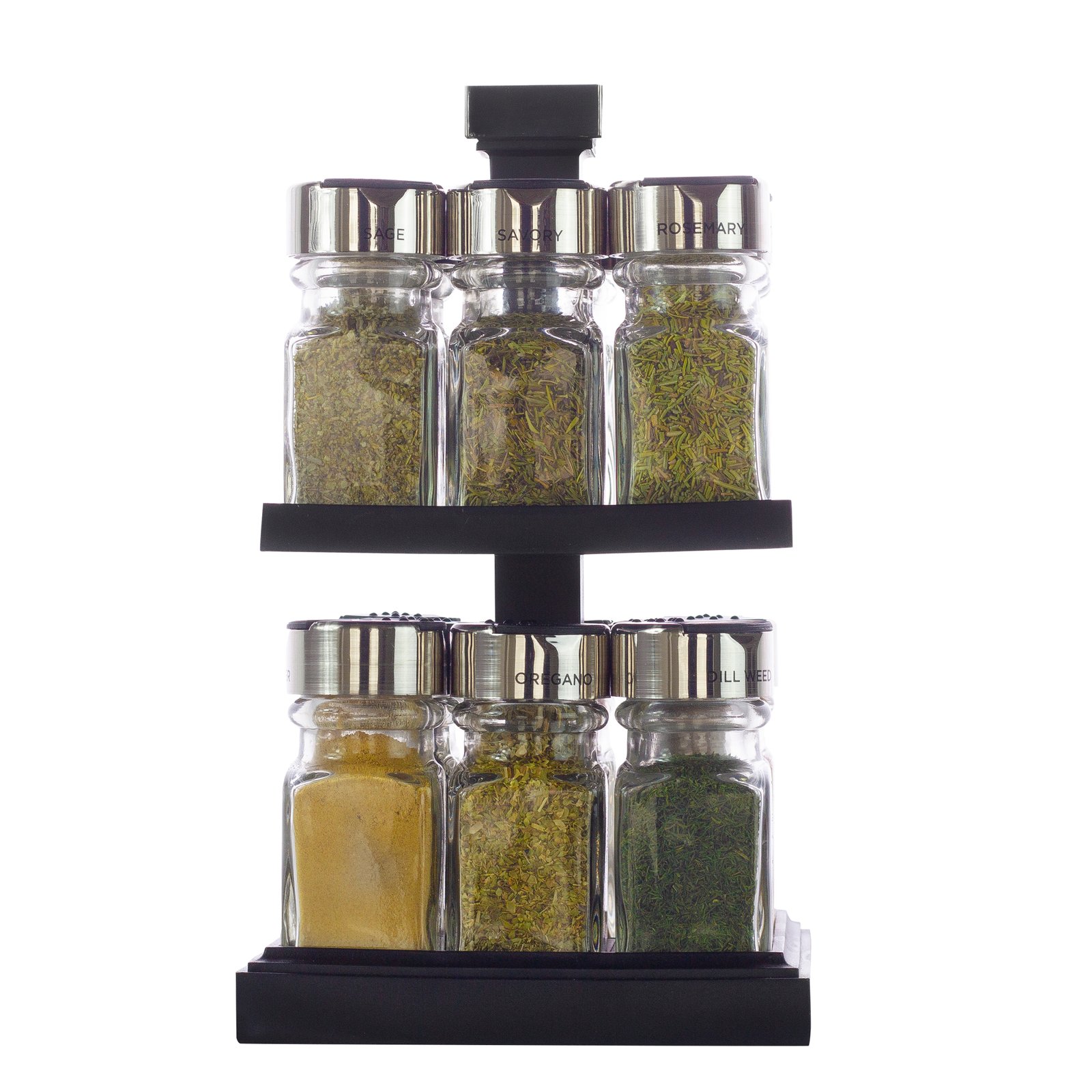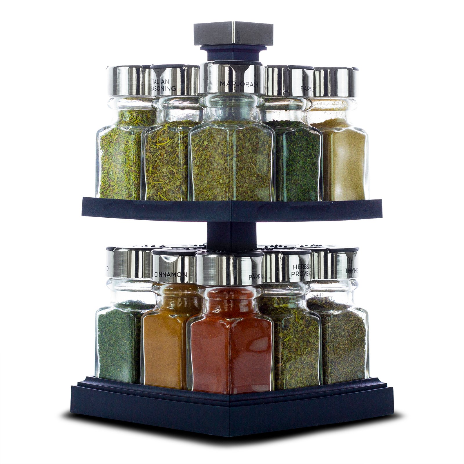 Especiero de vidrio Olde Thompson® giratorio de 2 niveles con 16 especias