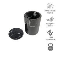 Frasco de mármol LuHoM™, la belleza y excelencia del mármol en tu hogar. Este recipiente está hecho 100% de mármol natural. Llévalo a tu baño o tocador para guardar tus accesorios de cuidado personal que utilizas en tu rutina de belleza. Coloca cotonetes, algodón, tu cepillo de dientes y más para tenerlos a la mano y darle a tu baño una presentación elegante. Además, incluye una tapa que protegerá el contenido del frasco. Cuenta con un acabado fino que le da un brillo reluciente y su material lo hace más resistente que los frascos de cristal o cerámica. Haz de tu baño un espacio elegante y guarda cada cosa en su lugar con este frasco de mármol.Ecológico y prácticoLavar a mano con agua, no utilizar productos químicosMármol negroMedidas: 7 cm de ancho, 7 cm de largo y 11 cm de alto