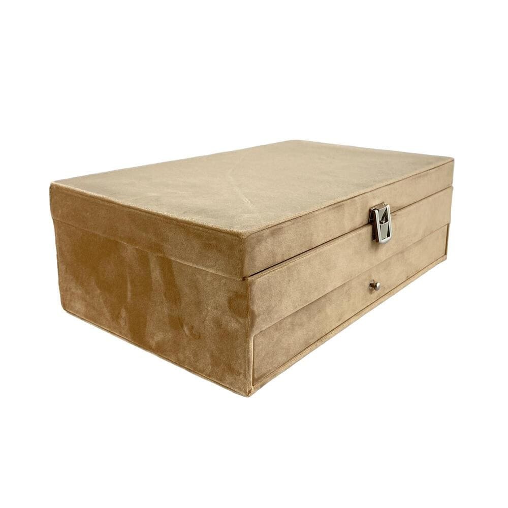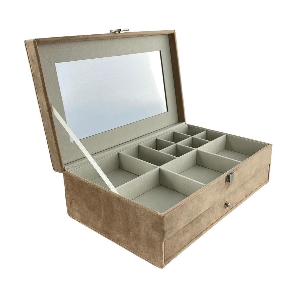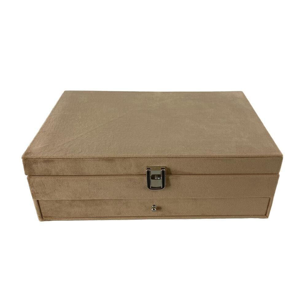 Joyero Concepts™, el espacio perfecto para tus joyas. Si no somos cuidadosos, nuestros objetos de metales y piedras preciosas pueden dañarse, es por eso que debemos cuidarlos desde el momento en que los guardamos. Para eso está este joyero, su diseño es de caja, de esta forma puede almacenar una gran cantidad de objetos. Además, por dentro tiene múltiples compartimientos para los diferentes tipos de joyas. Incluso tiene un espejo en la tapa para que puedas probarte los accesorios y ver cómo lucen con tu mejor outfit. Lo mejor de todo, es que cuenta con un forro de tela que protegerá a tus joyas de raspones o rayaduras.Joyero organizadorDiseño de cajaMúltiples compartimientos interioresCon cajónEspejo en la tapaAcomoda diferentes tipos de joyas, desde anillos hasta aretes, collares y pulserasForro de tela interior que protege las joyasSe abre y cierra fácilmente gracias a su cierreColor caféLimpiar con un paño secoMedidas: 20 cm de ancho, 32 cm de largo y 10 cm de alto