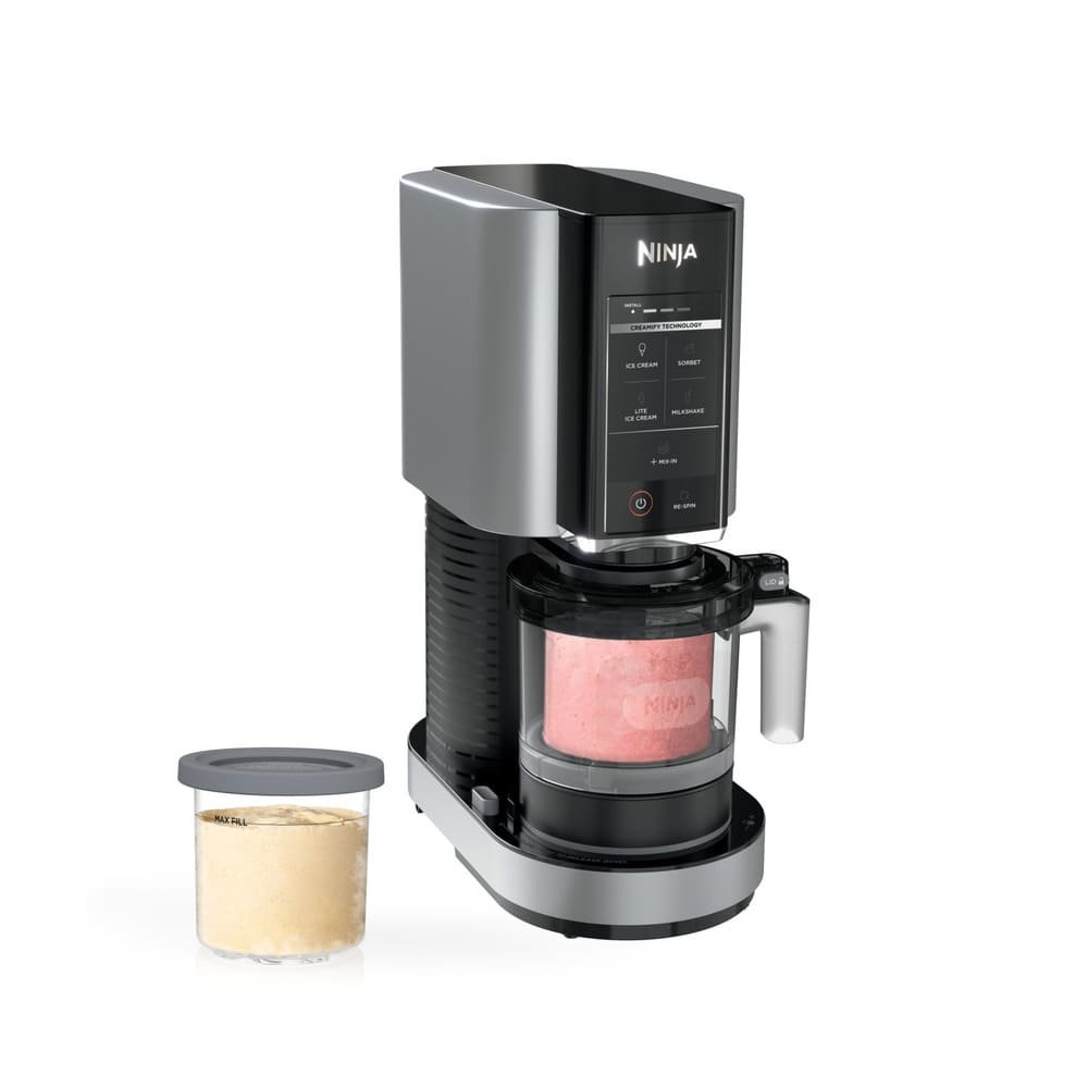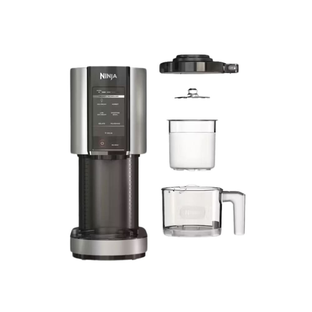Máquina para helados Ninja™ ¿se te antoja un helado, pero no quieres salir de casa? Pues con esta máquina podrás prepararlo tal y como te gusta. La Ninja Cream NC300 es un modelo innovador que incorpora un motor potente capaz de convertir tus ingredientes favoritos en un postre delicioso. Cuenta con 5 funciones que te permitirán hacer nieve, gelato, helado suave, malteadas y smoothies como todo un profesional; además, incluye cuchillas desmontables para una limpieza más sencilla. Si no estás seguro de para qué usarla, viene con un recetario que contiene alrededor de 15 ideas de delicias heladas muchas de las cuales serán tan saludables como exquisitas. Lo mejor de todo es que incluye dos recipientes con tapas herméticas para que puedas guardar el helado sobrante y siempre tengas un poco listo para comerse.Modelo Creami NC300Perfecta para preparar todo tipo de helados y nievesFácil de usarIncluye:2 recipientes de 473 mL con tapa1recipiente exterior con tapa1 cuchilla creamerizerRecetarioPuedes usar todo tipo de ingredientesCon 5 funcionesMotor de 800 wattsNo procesa ingredientes duros o hieloNo tritura bloques de hielo sólido o cubos de hieloSin BPAUso seguro en lavavajillasPlásticoLavar los contenedores a mano para mantener un rendimiento óptimoLimpiar la base con un paño húmedoColor grisPeso: 5.9 kgMedidas: 42 cm de ancho, 20 cm de largo y 43 cm de alto