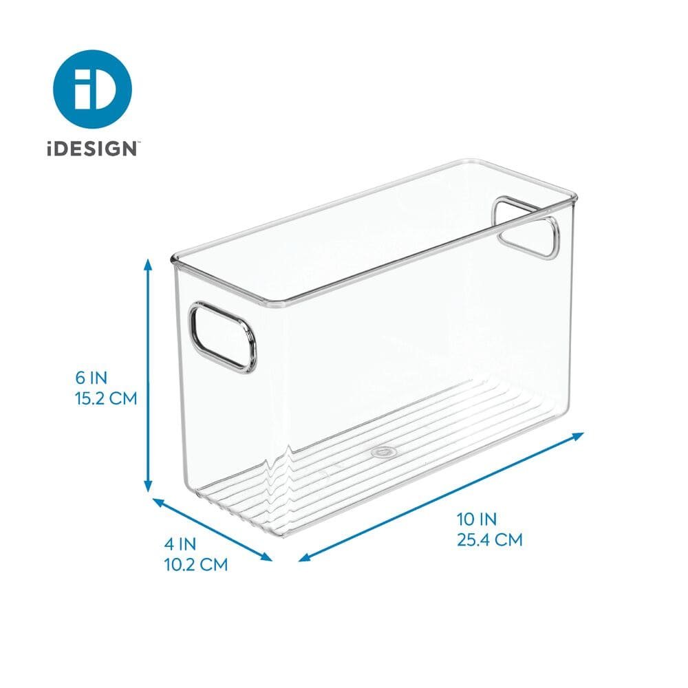 Organizador de plástico iDesign®, una forma práctica de ordenar tu espacio culinario. La cocina es uno de los lugares que tiene más cosas y, por consiguiente, aquí se necesita prestar mayor atención a la organización. Ya sea que necesites un espacio para frascos, botellas, condimentos y más, este recipiente hecho de plástico es tu mejor opción. Es resistente y duradero, además, su diseño es transparente, de esta forma podrás ver su contenido fácilmente. Lo mejor de todo, es que puedes meterlo al refrigerador para conservar tus alimentos y bebidas frescos.Diseño transparenteApto para refrigeradorIdeal para sobres, condimentos, frascos y másMedidas: 25.4 cm de ancho, 10.2 cm de largo y 15.2 cm de alto