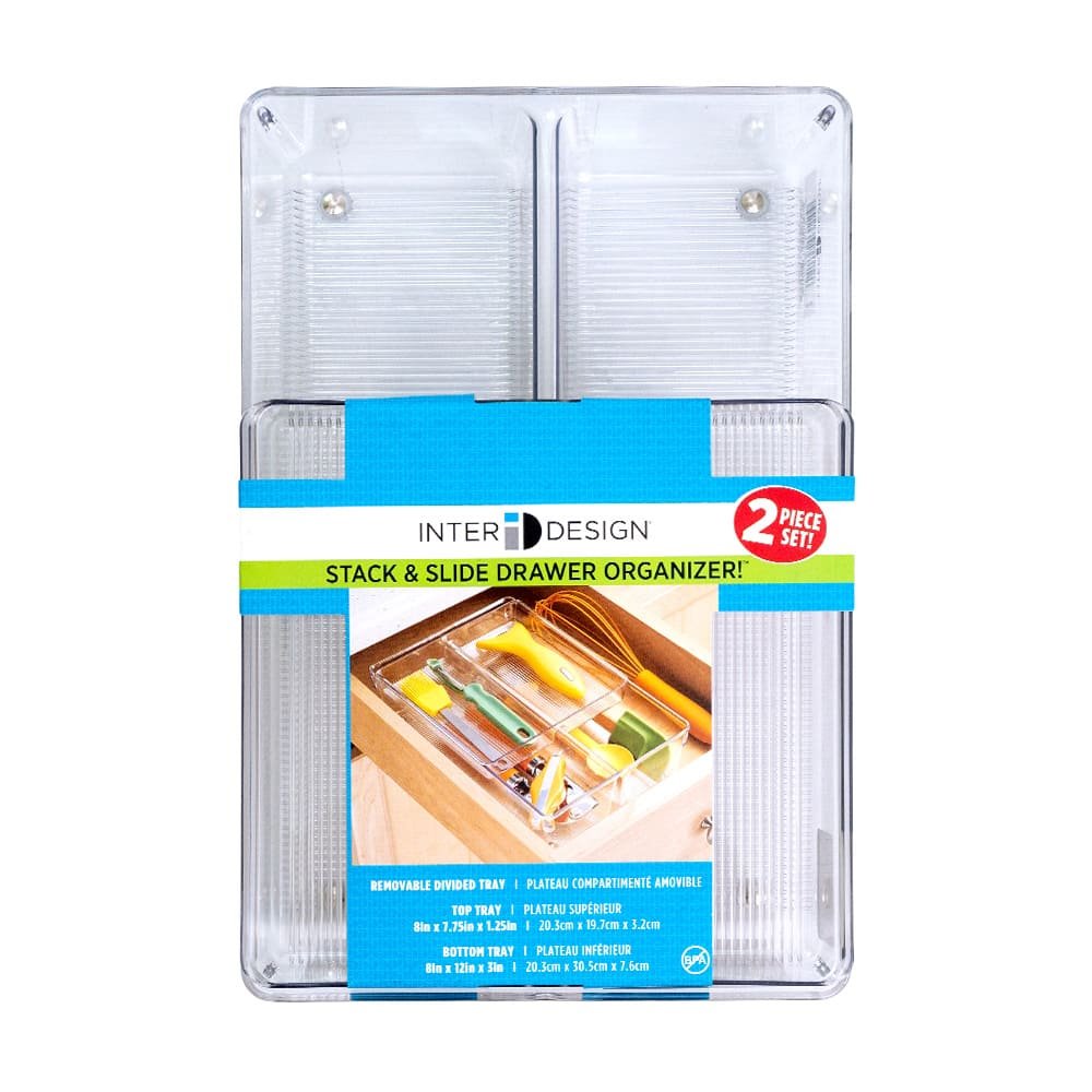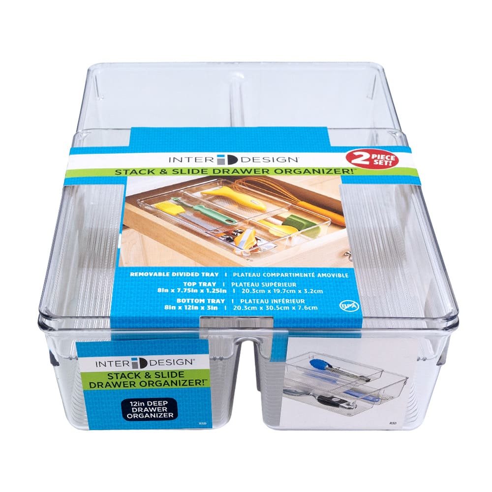 Organizador de plástico InterDesign®, ordena todos los accesorios de tu espacio. Hay ocasiones en las que por más que busquemos, no encontramos lo que necesitamos dentro del desastre de los cajones. Dile adiós al desorden con este organizador. Te ayudará a darle un mejor lugar a cada accesorio y una buena organización. Está compuesto de un compartimiento principal y, sobre el mismo, una bandeja deslizable donde puedes guardar varios objetos. Colócalo dentro de tu cajón y aprovecha al máximo su espacio.Organizador de cajones de 2 niveles1 compartimiento inferior y 1 bandeja superior deslizableTransparenteIdeal para cajonesDimensiones: de 20.3 cm ancho, 30.5 cm de largo y 8 cm de altoLimpiar con un paño húmedo