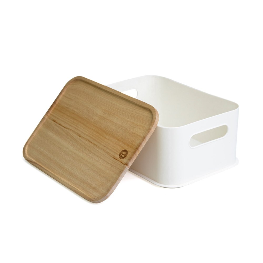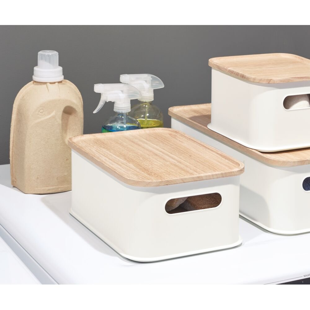 Organizador de plástico reciclado iDesign® con tapa de madera