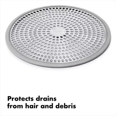 Protector de acero inoxidable para coladera OXO Good Grips® evita que se tape tu drenaje con este práctico protector de OXO Good Grips®. Está especialmente diseñado con un borde que lo mantendrá en su lugar. Además, atrapará el cabello sin bloquear el paso del agua. Previene que se tape el drenaje Presenta un diseño delgado que no estorba Cuenta con un borde de silicón que evitará que se mueva Medidas: 12.06 cm de largo y 12.06 cm de ancho Fácil de limpiar Hecho de acero inoxidable De importación