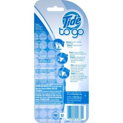 Quitamanchas instantáneo para ropa Tide To Go®, perfecto para que tus prendas siempre luzcan impecables. Gracias a su diseño de pluma, puedes llevarlo contigo a cualquier lugar en la bolsa, el carro o el portafolio. Descompone las manchas de la ropa, las quita y las absorbe rápidamente.Elimina manchas de comida y líquidosDiseño compacto que cabe en la bolsa o la mochilaFunciona con jugo de tomate, cátsup, salsa BBQ, jugo de uva, café, vino, té, chocolate y másNo contiene blanqueadorDe importaciónAdvertencia: No poner en contacto con los ojos porque puede irritarlos. Mantenerlo fuera del alcance de los niños. Contiene tensioactivos aniónicos. En caso de ingerirlo, tomar un vaso de agua para diluirlo. En caso de entrar en contacto con los ojos, enjuagar con agua por 15 minutos.