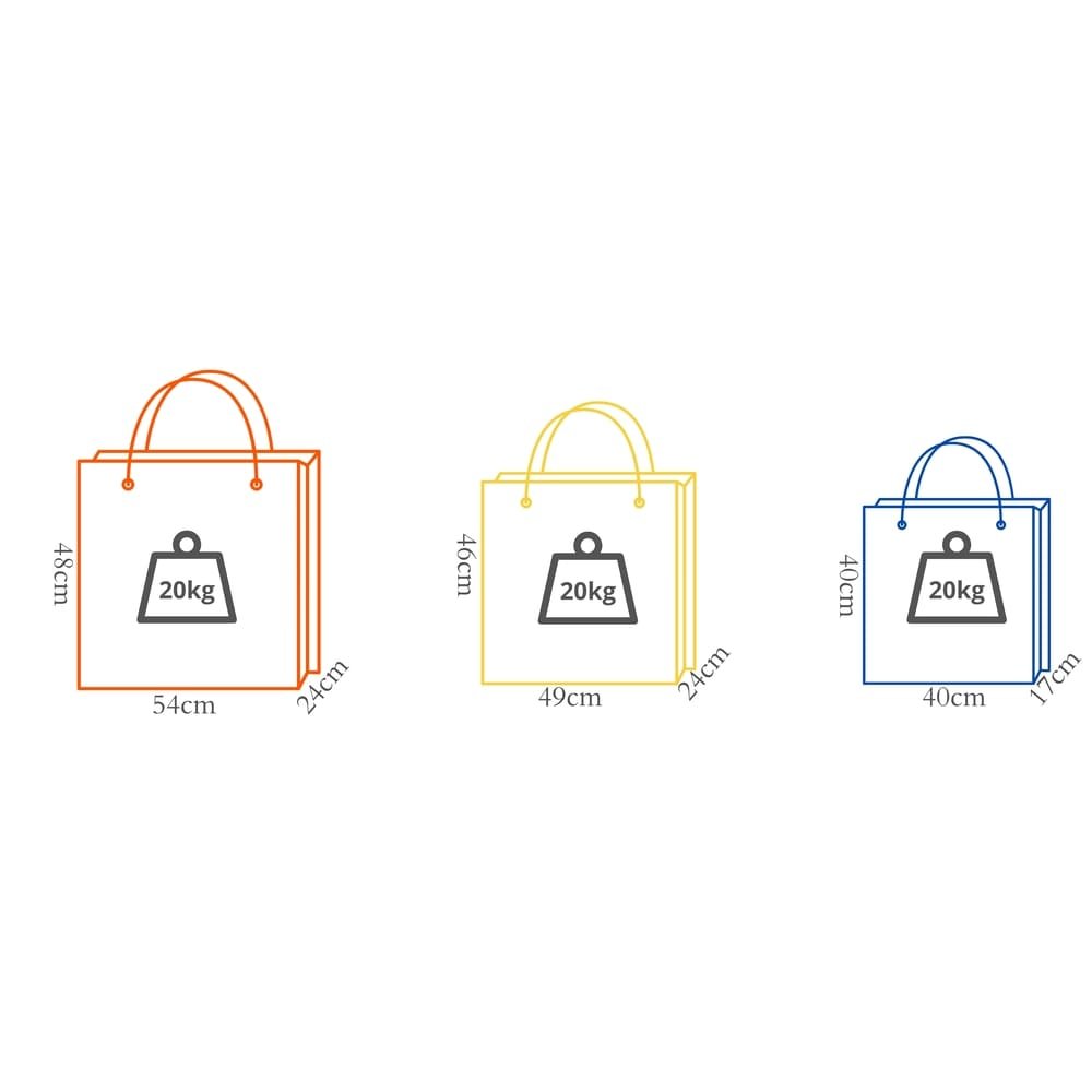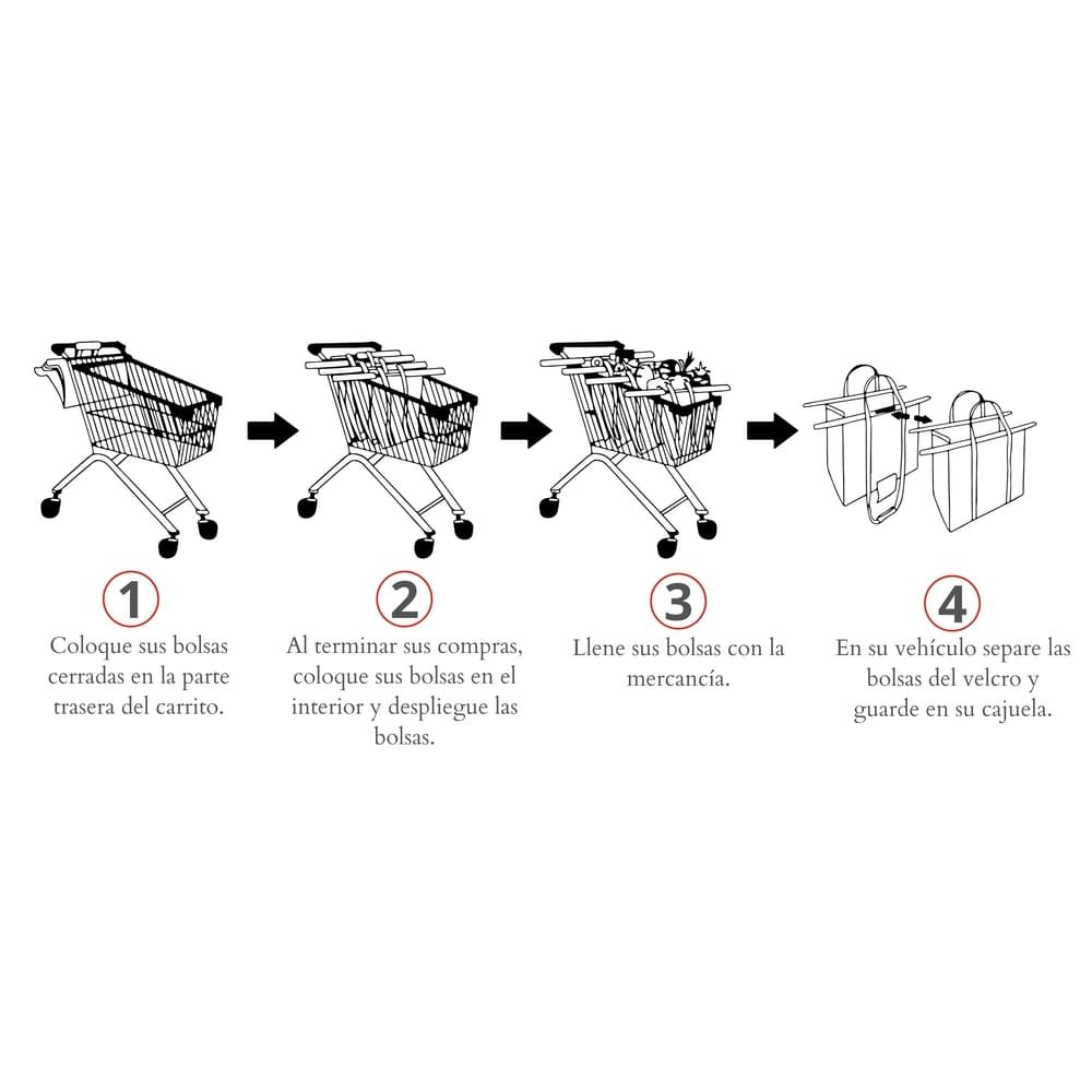 Set de bolsas reutilizables Multifundas™, haz las compras y no pierdas tiempo en ordenar cada artículo. Cuando vamos al súper, colocar cada pieza que compramos dentro de una bolsa suele ser tedioso, hay que abrirla una y otra vez para ir metiendo las cosas. Con este juego de bolsas eso se acabó, su diseño incluye dos barras que puedes colocar sobre el carrito, manteniéndolas abiertas en todo momento. Además, vienen en tres tamaños diferentes, ideal para una gran variedad de artículos. Y, por supuesto que son reutilizables, úsalas cuantas veces quieras.Juego de bolsas para carrito de súperSistema de barras que te permite colocarlas sobre el carrito y mantenerlas abiertasCinta de velcro en el exterior para enrollarlasSet de 3 piezas incluye:1 bolsa chica de 40 cm de ancho, 17 cm de largo y 40 cm de alto1 bolsa mediana de 49 cm de ancho, 24 cm de largo y 46 cm de alto1 bolsa grande de 54 cm de ancho, 24 cm de largo y 48 cm de altoCada bolsa tiene una capacidad de hasta 20 kgReutilizablesLavar a mano con agua y jabón neutro, dejar secar en el exteriorMedidas: 40 cm de ancho, 40 cm de largo y 65 cm de alto