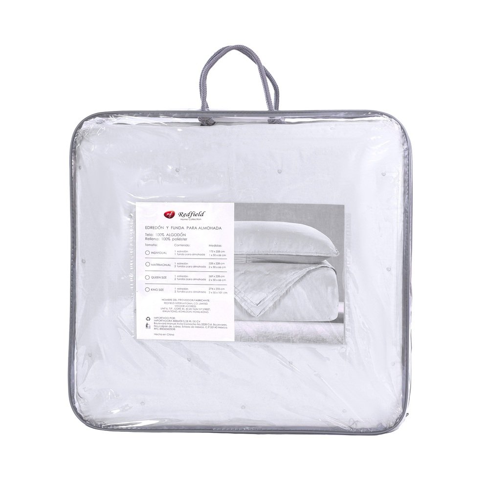 Set de edredón de algodón Redfield™ es todo lo que necesitas para que la ropa de cama de tus habitaciones renueven su vista por completo. Este edredón está hecho de algodón de la más alta calidad que se siente suave y resistente desde el primer contacto. Además, cuenta con un diseño liso y colores sólidos fáciles de combinar que cambiarán por completo la vista de tus habitaciones sin necesidad de cambios extremos. Porque cada detalle en casa es sumamente importante para que se siente una armonía sin igual, adquiere este edredón para llevar a estos espacios un paso adelante en moda y calidad. Este edredón está disponible en otros tamaños y colores (de venta por separado).100% algodónLavar en secoLeer la etiqueta para su cuidado correctoNo exponer al fuegoHecho en ChinaIncluye:1 edredón2 fundas para almohada3 piezas