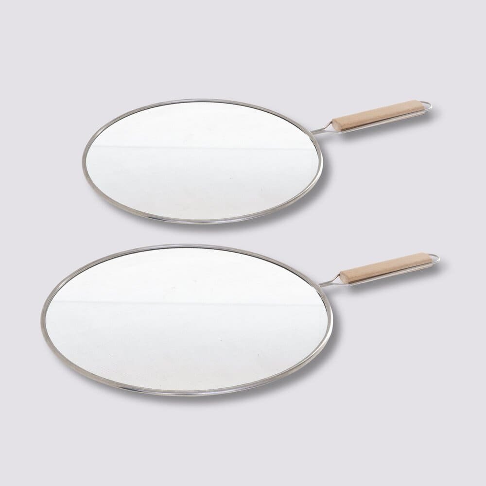 Set de tapas antisalpicaduras 5five® será tu salvación si sueles cocinar con aceite regularmente o estás acostumbrado a preparar platillos que salpiquen mucho mientras hierven. Estás tapas antisalpicaduras están diseñadas para colocarse sobre la mayoría de las cacerolas y sartenes de tamaño común y facilitar la limpieza de la estufa después de cocinar. Cuentan con mangos alargados de madera para ponerlas y quitarlas sin quemarte; además, tienen un orificio al extremo del mango que será muy útil si quieres colgarlas. Si cocinas más de una cosa a la vez, no hay de que preocuparse, ya que el set incluye dos piezas.Una solución para mantener tu estufa limpiaFáciles de colocarSe ajustan a muchos tipos de ollas, sartenes y cacerolasHierro/maderaAtrapan el aceite, salsas y otros líquidos que salpiquenMango de madera que garantiza mayor seguridadSet de 2Medidas: 28.7 cm de ancho y 43.5 cm de largo
