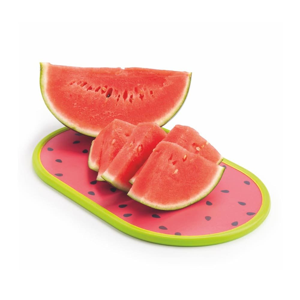Tabla para picar de plástico Joie™, haz que cocinar sea una tarea fácil y emocionante con esta divertida tabla para picar con diseño de sandía. Esta deliciosa fruta inspiró el diseño de este utensilio para traerte un espacio más amplio para cortar. Pica sobre ella y evita la contaminación cruzada de alimentos, es reversible, podrás utilizarla por los dos lados. Lleva esta herramienta indispensable a tu cocina y convierte tu espacio culinario en un lugar lleno de alegría y color con esta singular sandía hecha tabla.En forma de sandíaHecha de plástico resistenteAmpliaPlásticoReversibleLavar con agua tibiaLimpiar con esponja y jabón líquidoLimpiar con un paño secoNo usar fibrasIdeal para rebanar, trocear, cortar y picarEvita la contaminación cruzada de alimento.Medidas: 23 cm de ancho, 37 cm de ancho y 1 cm de alto