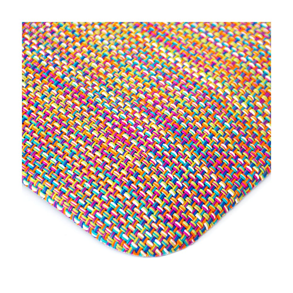 Tapete para cocina de PVC, pasa todo el tiempo que quieras en tu espacio culinario sin cansarte. La cocina es uno de los lugares donde estamos por mucho más tiempo, preparar la comida no es tarea fácil. Para hacer de tu estadía aquí más placentera, coloca este tapete. Está hecho para evitar que pises directamente el suelo y, en su lugar, párete sobre una suave superficie cómoda. Ponlo donde más lo necesites, ya sea frente a la tarja, cerca de la encimera o cualquier otro lugar donde pases mucho tiempo de pie. Además, está hecho de PVC y poliéster, una combinación que lo hace resistente al uso diario. Y, ya que también pensamos que la cocina es un lugar hermoso, reunimos los colores más brillantes que habitan en este espacio y los fusionamos en una sola pieza. Cada hebra del tapete es de un color diferente, haciendo un tramado multicolor, perfecto para una decoración más alegre y viva. Cambia la forma de pasar el tiempo en tu cocina y haz de cada minuto el momento más cómodo con este tapete.Tapete de cocinaPárate sobre una superficie cómoda y suaveIdeal si pasas mucho tiempo de pieDiseño brillante multicolor, cada hebra del tejido es de un color diferenteResistente y duraderoLimpiar con un paño húmedo70% PVC/30% poliésterMedidas: 50 cm de ancho y 81 cm de largo