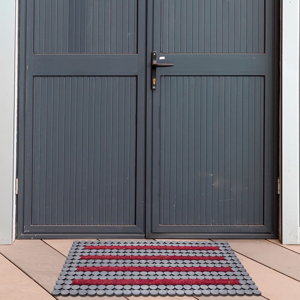 Tapete para entrada de caucho DIB Dots de 45 x 75 cm color gris/rojo