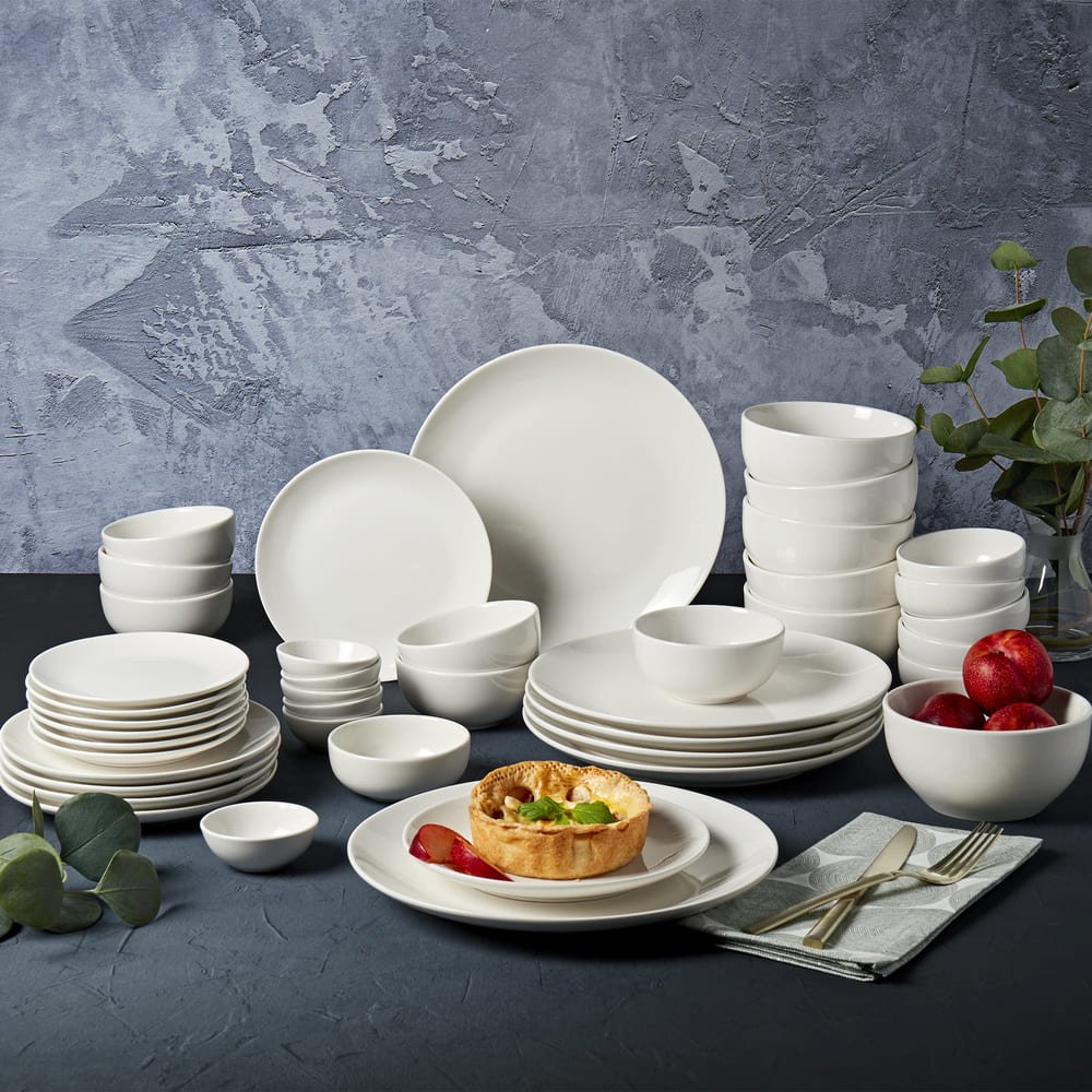 Vajilla de cerámica Denmark™ Coupe color blanco, 42 piezas