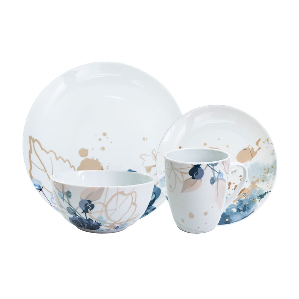 Vajilla de cerámica PK Home™ estilo acuarela, 16 piezas
