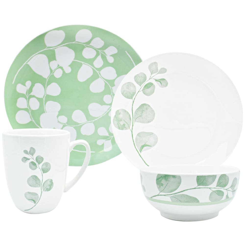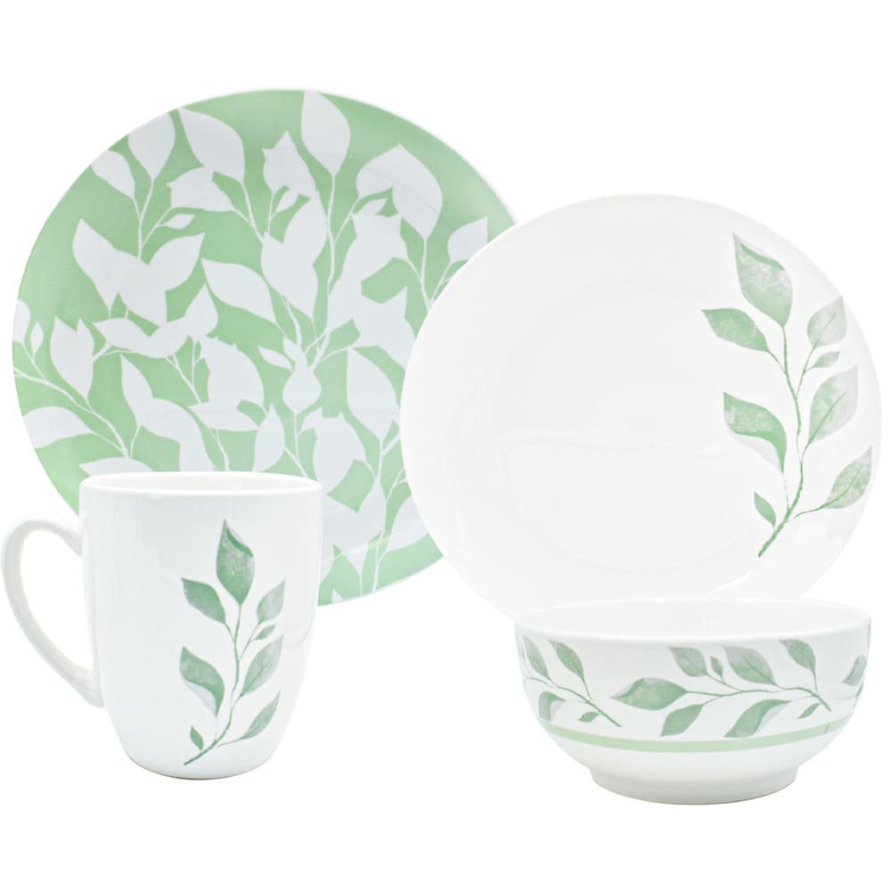 Vajilla de porcelana Kaiser™ Botanique color verde, 16 piezas