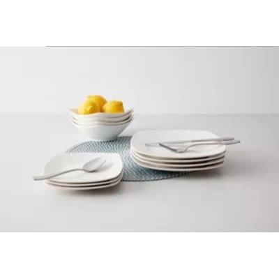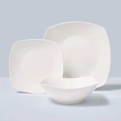 Vajilla cuadrada de porcelana Simply Essential™ Soft para 4 personas color blanco, 12 piezas