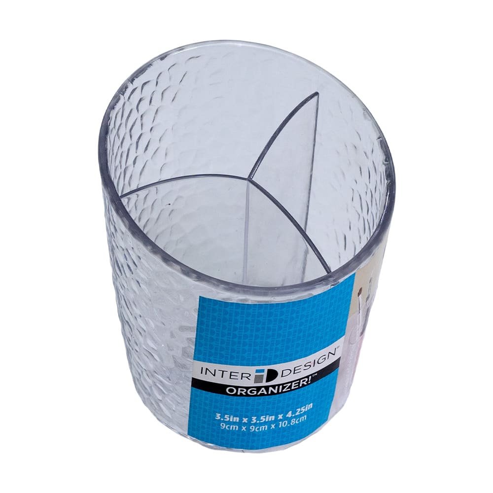 Vaso de plástico InterDesign®, ordena todos tus accesorios de belleza. Hay veces en las que no tenemos el lugar adecuado para guardar nuestros utensilios de belleza y se encuentran desperdigados en el cajón más grande del tocador. Para mantener tus accesorios en orden, especialmente las brochas y objetos largos, traemos para ti este vaso. Está hecho de plástico reciclado y tiene un diseño transparente. Es ideal para colocarlo sobre tu tocador, encimera o dentro de un cajón.Vaso organizador para cosméticosColócalo sobre el tocador, encimera o dentro de un cajónDiseño transparenteMedidas: 9 cm de diámetro y 10.8 cm de altoPlásticoLimpiar con un paño húmedo