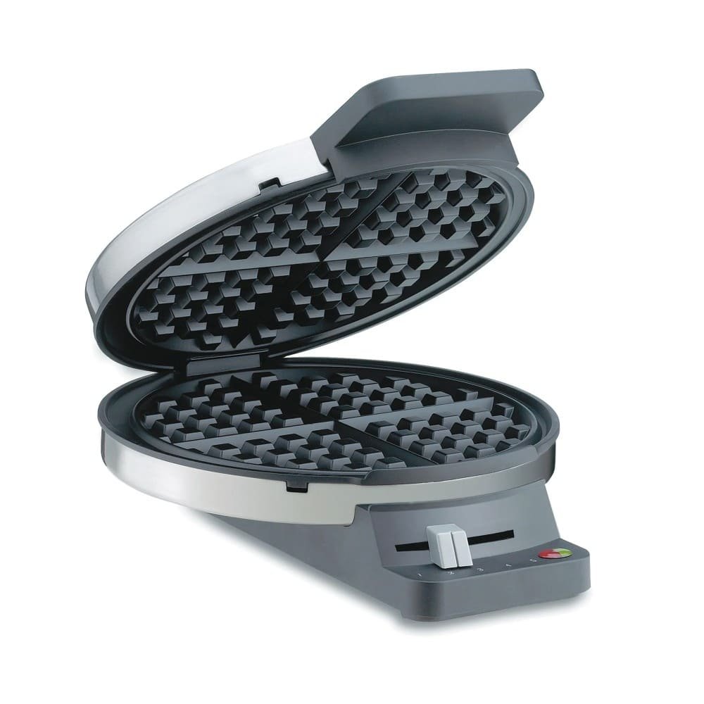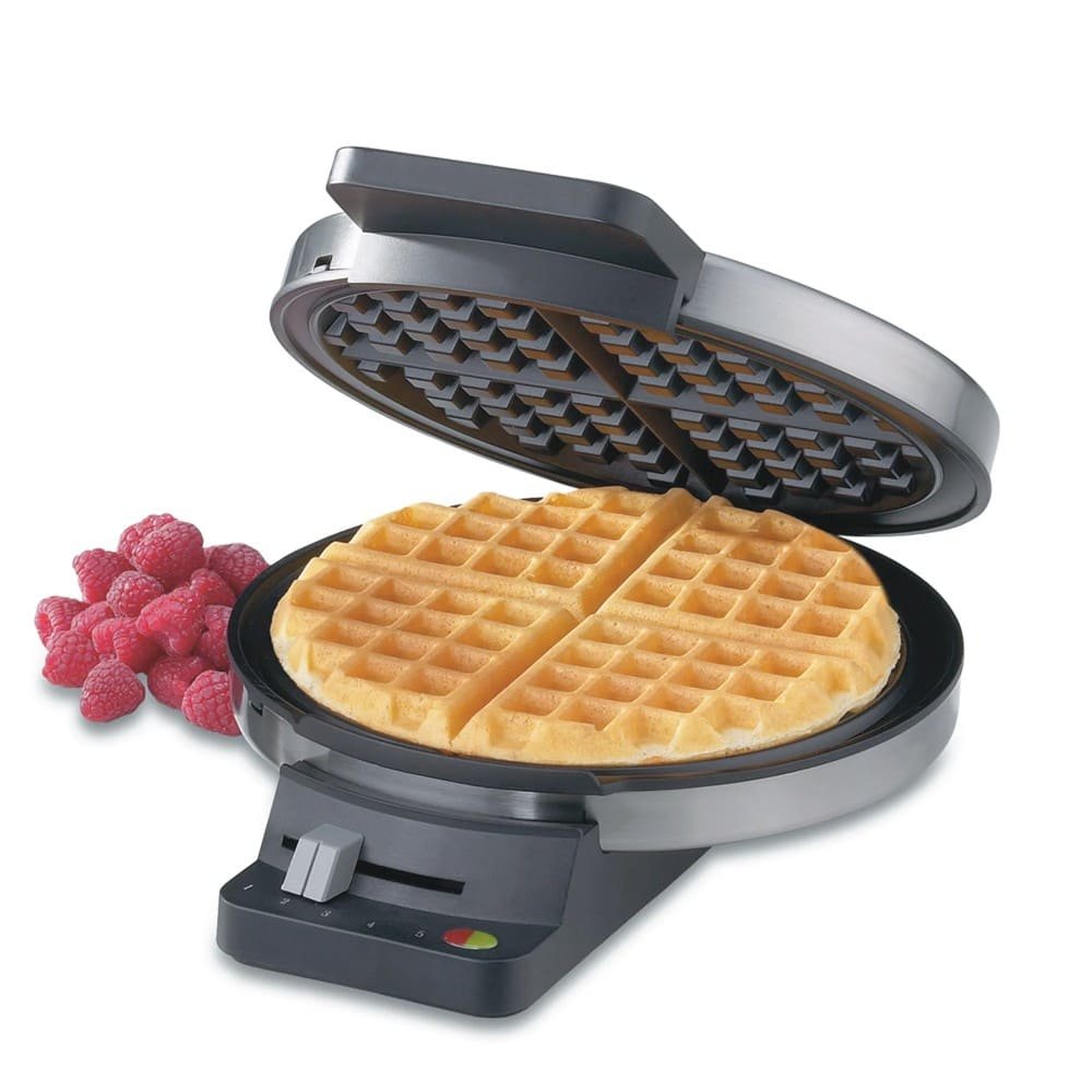 Waflera redonda clásica Cuisinart® prepara en minutos un waffle grande con este clásico electrodoméstico de Cuisinart®. Su pesada tapa garantiza un dorado perfecto y uniforme gracias a sus cinco configuraciones de control. Además, su elegante diseño lucirá hermoso en tu cocina sin ocupar mucho espacio, ya que se mantiene en pie y el cable se enrosca debajo de la base. Termostato regulador y dos luces que te indican cuándo está listo para hornear y para comer Incluye: Placas divididas en cuatro con recubrimiento antiadherente Instructivo/recetario Hecha de acero inoxidable cepillado Limpiar con un paño Certificación UL Medidas: 20 cm x 24.61 cm x 8.40 cm Peso: 2.4 kgModelo WMR-CA